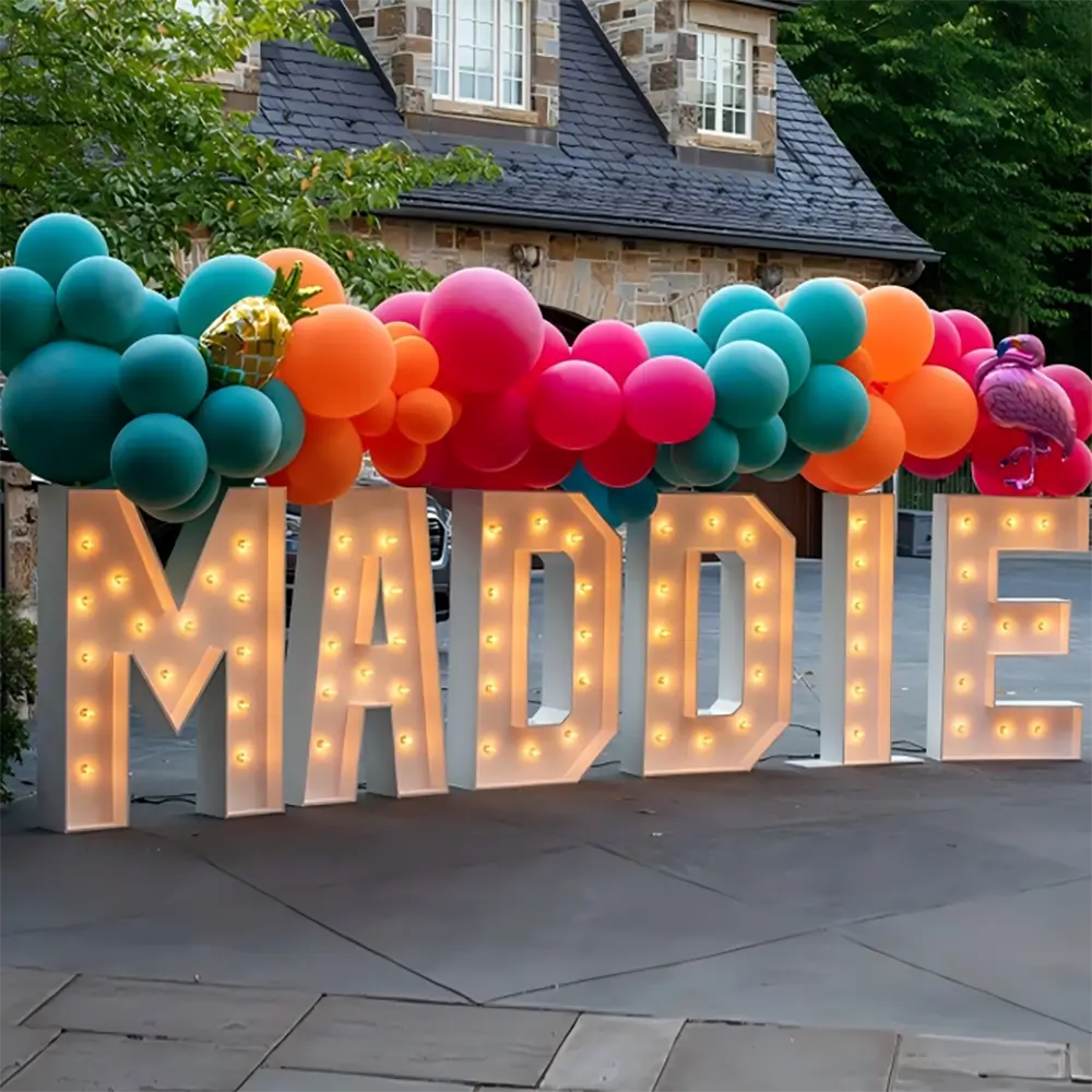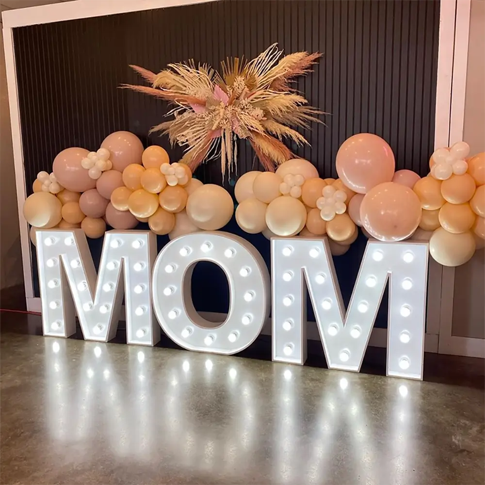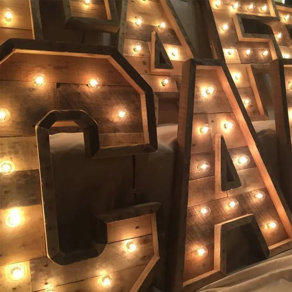 These letters can be manufactured according to specific project requirements. Customization options include size, finishes, bulb styles, illumination colors, and mounting methods. Suitable for events, retail displays, and themed environments.