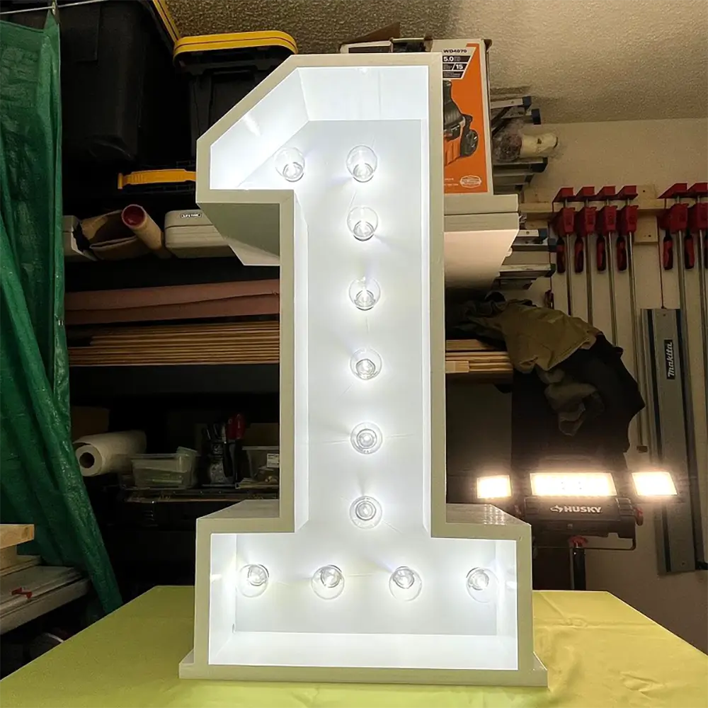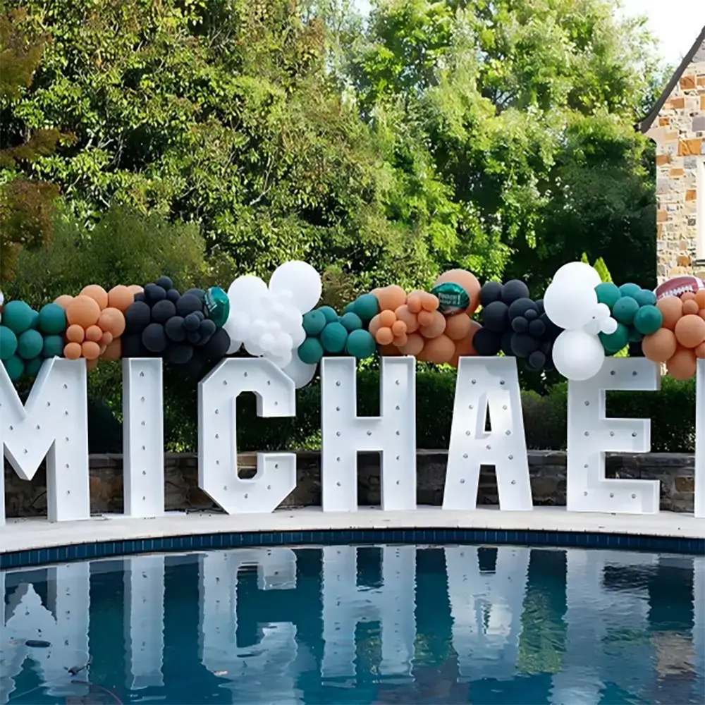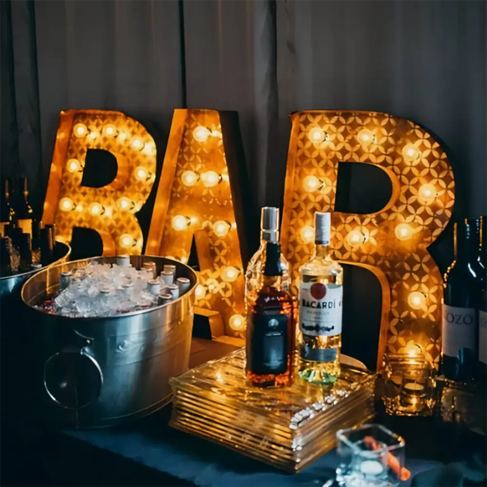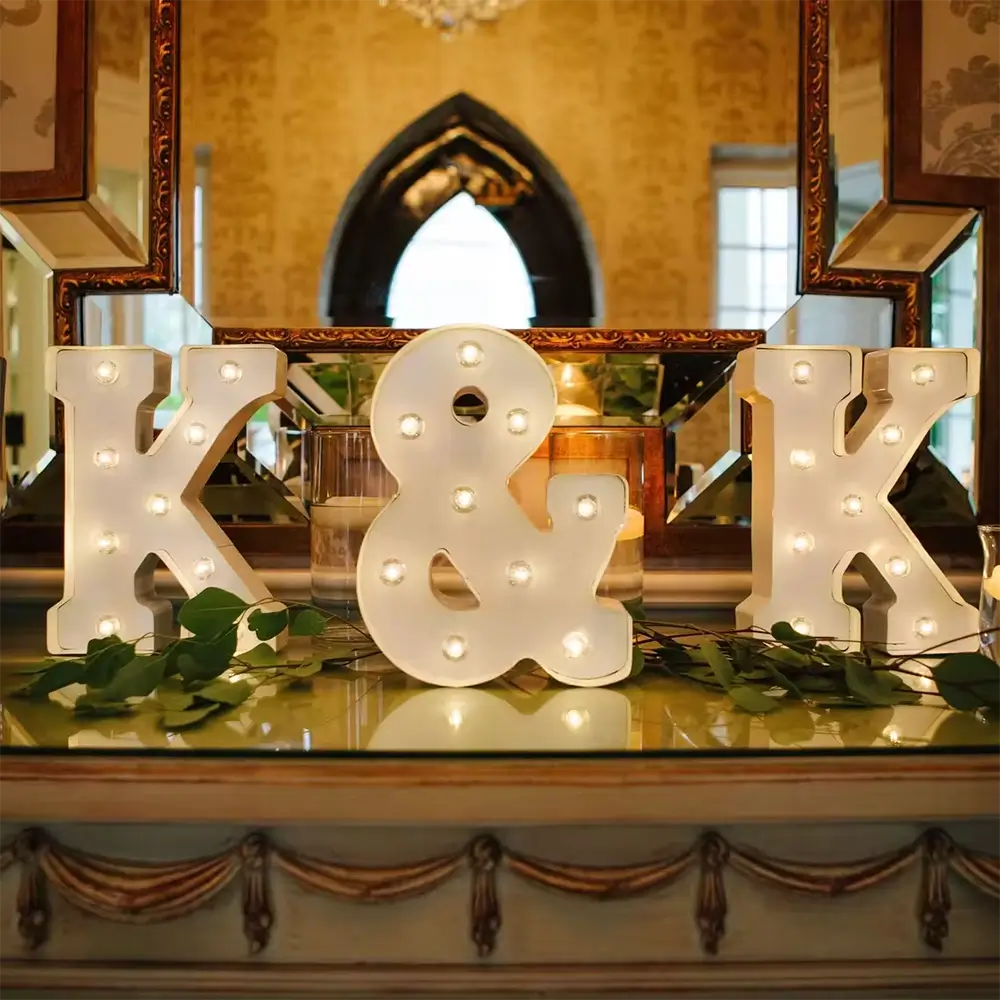 These letters can be manufactured according to specific project requirements. Customization options include size, finishes, bulb styles, illumination colors, and mounting methods. Suitable for events, retail displays, and themed environments.