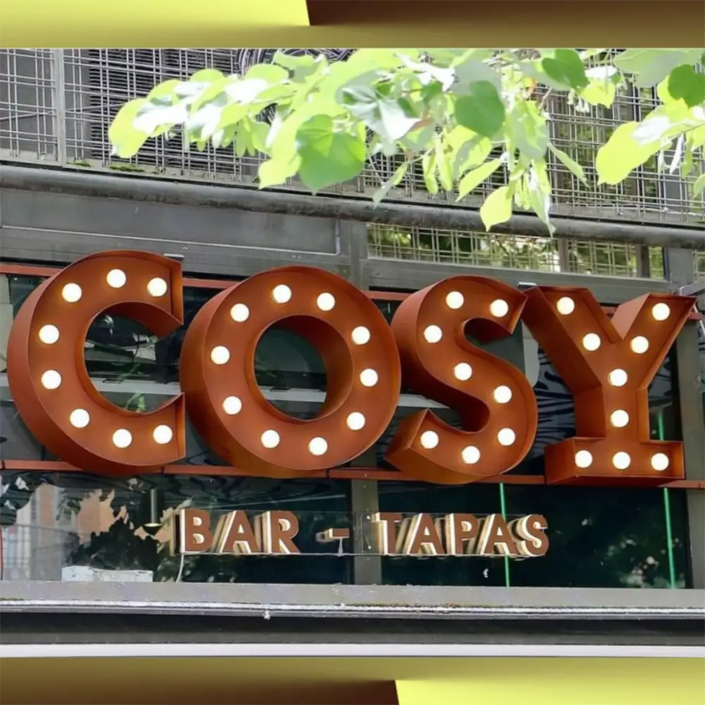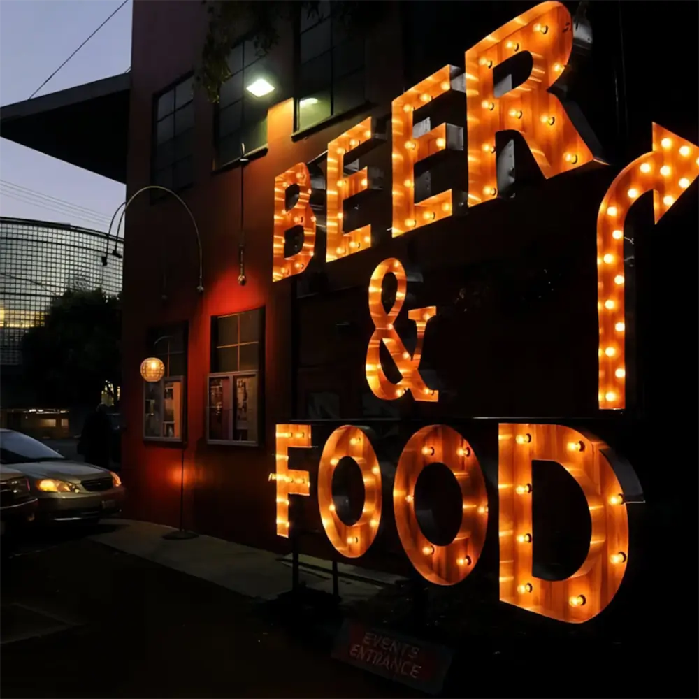 Vintage Marquee Letters are designed for decorative signage applications featuring exposed bulb lighting and a retro aesthetic. The marquee style creates strong visual impact and nostalgic appeal, while integrated lighting ensures visibility. Precision fabrication guarantees structural stability and consistent performance.