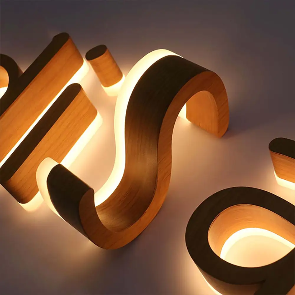 Custom options include wood type, thickness, surface coating, letter size, LED color temperature, backing structure, and installation method. These custom wood backlit letters are widely used in retail stores, cafes, office interiors, and hospitality signage projects.