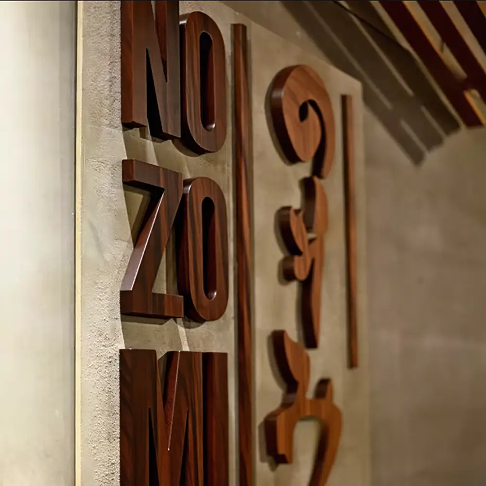 Wooden Letters are fabricated from natural or engineered wood materials, providing textured surfaces and stable structure for non-illuminated signage. The material offers a warm and natural appearance suitable for interior environments.